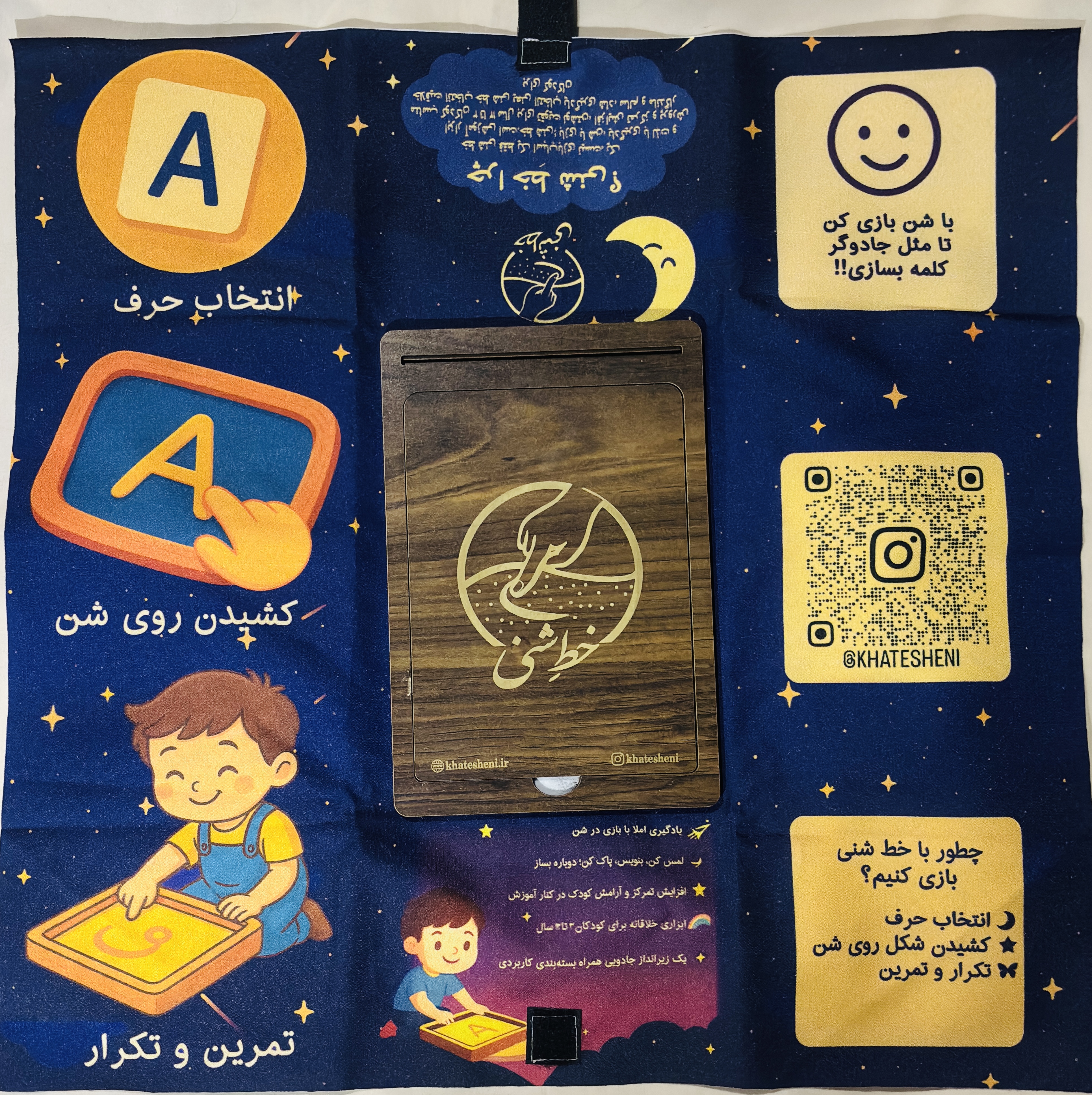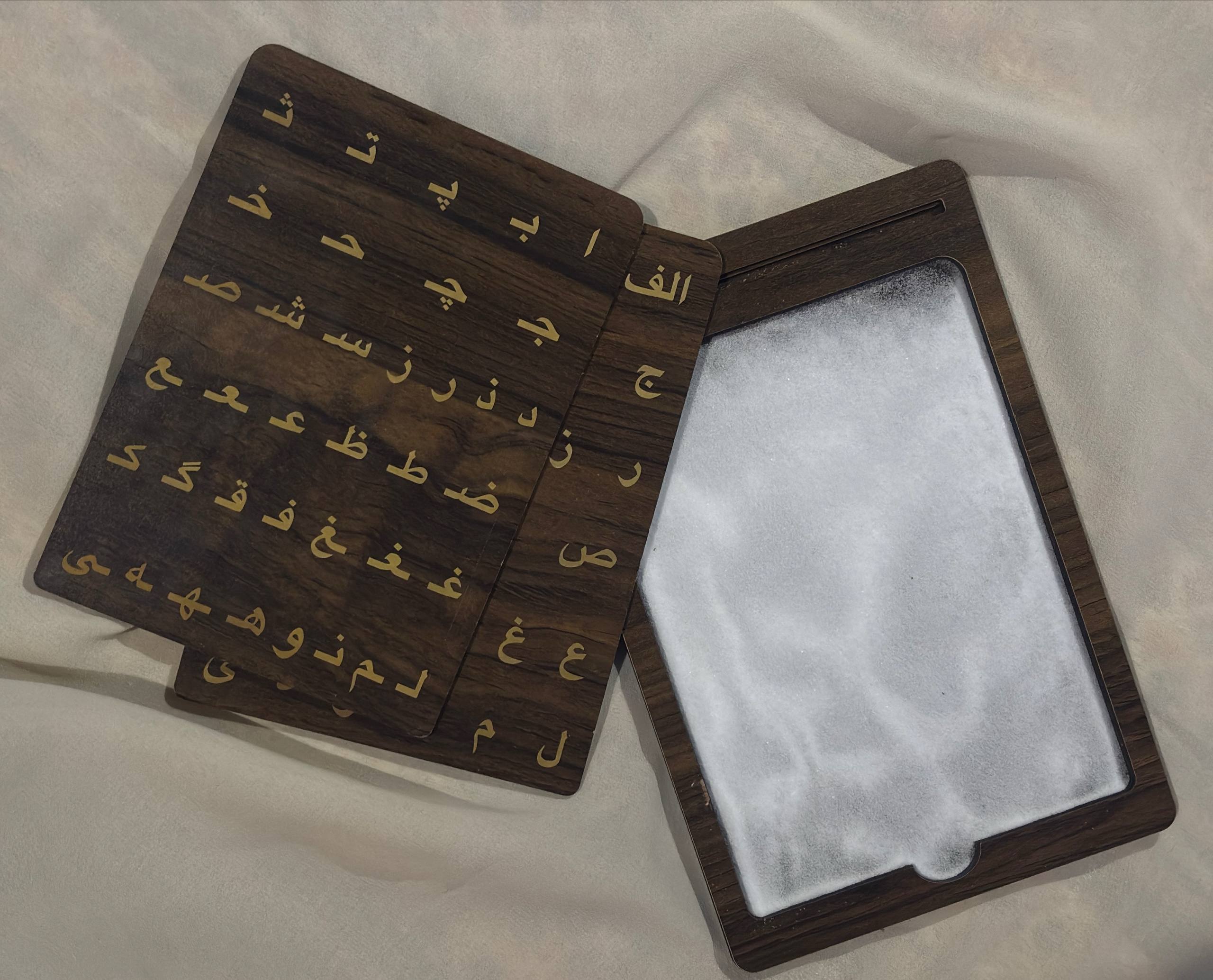 دستهبندی: خط شنیبرچسبها : الفبا، الفبای فارسی، آموزشی، سینی چوبی، بازی با شنرنگ: قهوه ایاندازه: 30 در 55